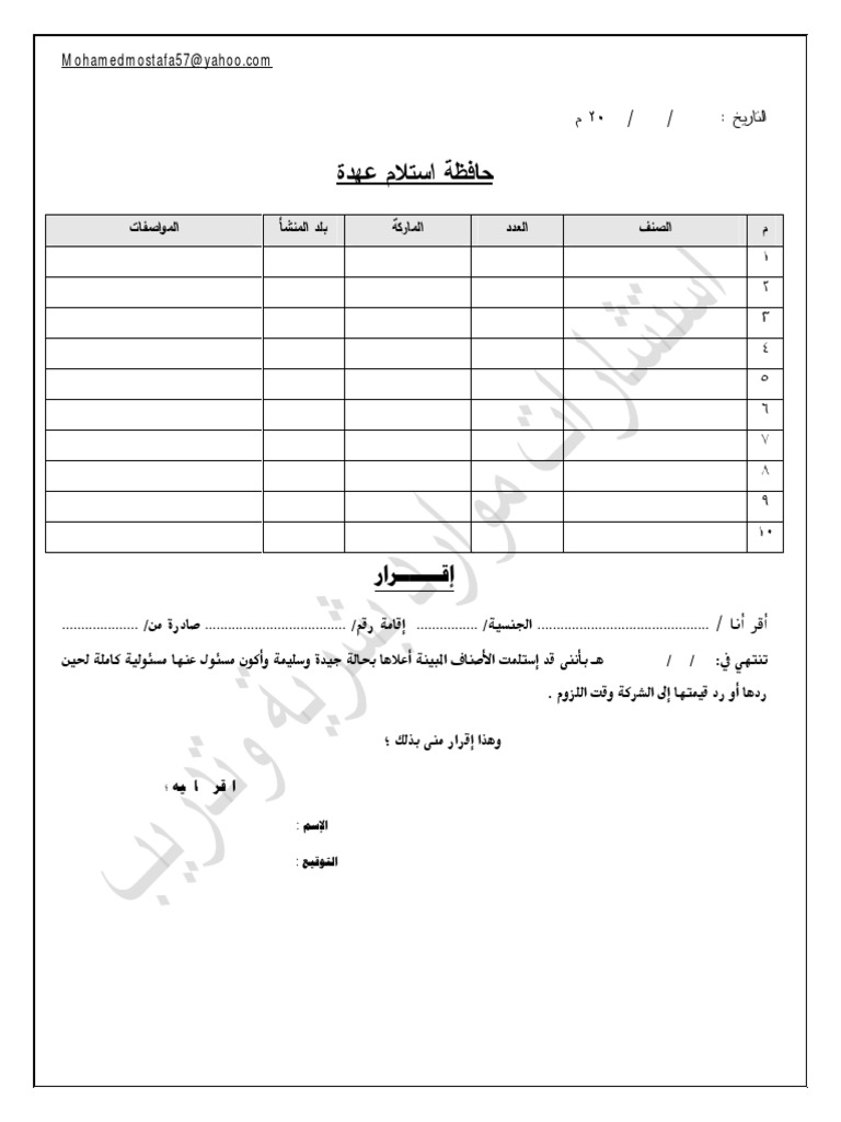 نموذج استلام عهدة