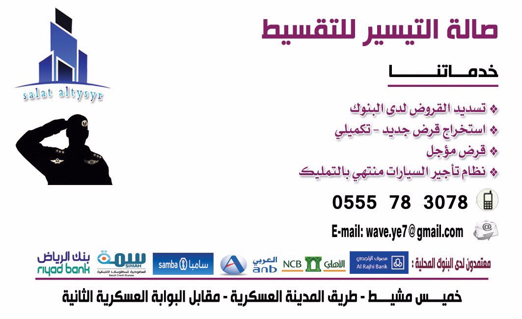 Uzivatel مكاتب قروض تسديد مكاتب التيسير Na Twitteru يسرنا نحن مكاتب صاله التيسير لسداد المديونيات والقروض استقبال طلبات عملائنا في كافه المنطقة الجنوبية وغيرها من المناطق على رقم 0555783078 للموظفين