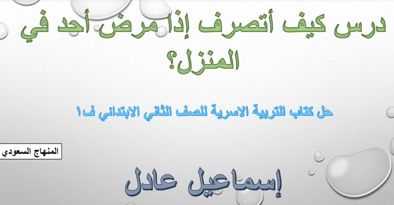 تربية أسرية بـ92 الوحدة الثالثة شخصيتي الدرس كيف أتصرف إذا مرض أحدفي المنزل