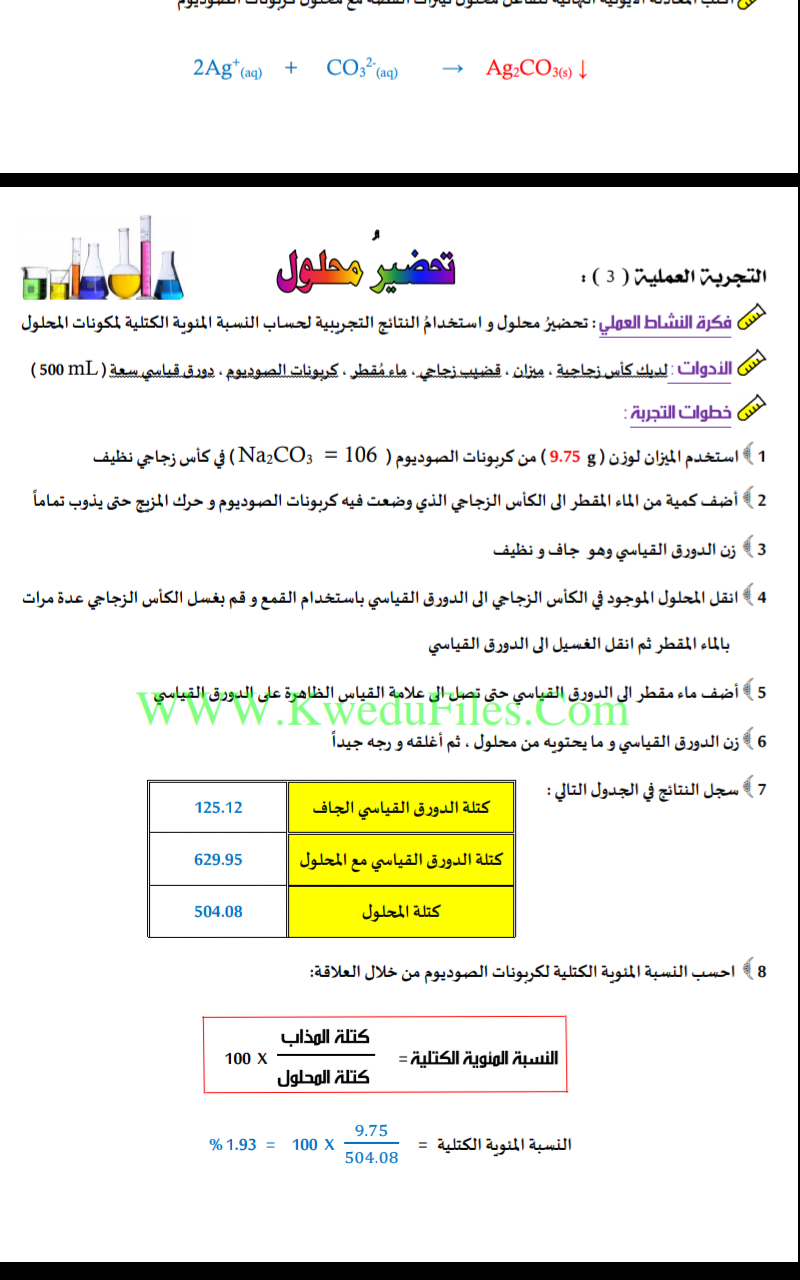 حل مادة الكيمياء كتاب التجارب درس دليل التجارب العلمية للصف الثاني الثانوي الفصل الدراسي الثاني