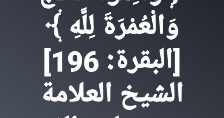 وقفة مع آية و أ ت م وا ال ح ج و ال ع م ر ة ل ل ه البقرة 196