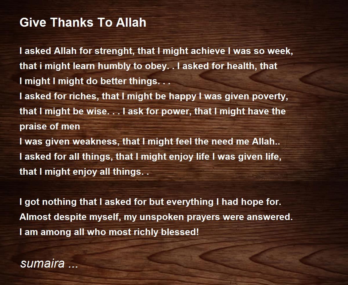 Give Thanks To Allah Poem By Sumaira Poem Hunter Comments Page 1